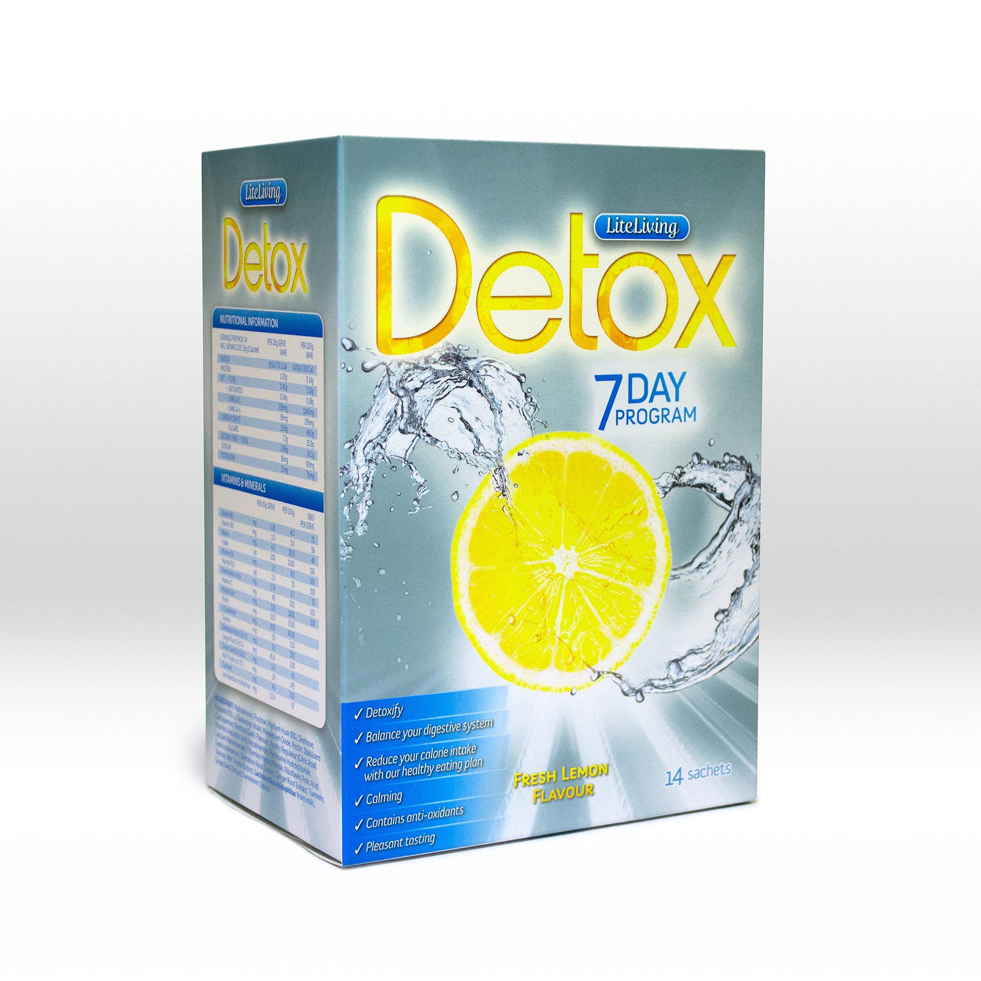 The Ishimodo Brand and Design Agency was tasked with helping LiteLiving to develop a strong brand presence in the growing lemon detox market, which was fast becoming over saturated. They commissioned Stephen to design a solution that would be youthful, fun, and have a refreshing taste appeal. Franklin answered the initial brief creating four lemon photography concepts - movement, still, medical, and results. After narrowing down to the movement direction Stephen iterated on the front of pack hero image and product branding. The result was a piece of brand packaging bursting with life and flavour, giving it a distinct on-shelf presence that communicated trust and taste.